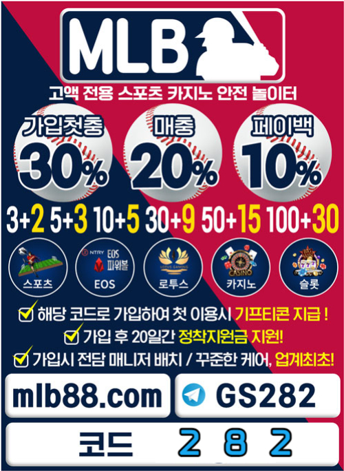 [MLB] MLB놀이터 | 가입첫충30% 혹은 3+2/5+3/10+5 | 페이백 10% | 토큰게임 | 첫환전까지 무제한 20…