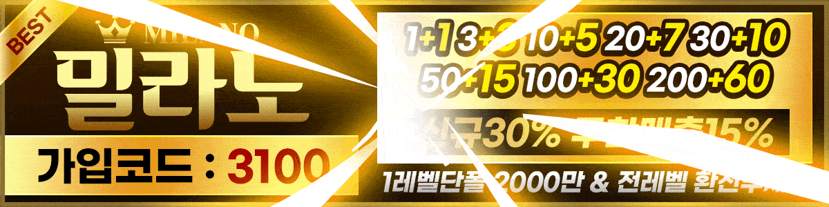 ##밀라노 $$ 첫 충전 30%, 무한 매충 15%, 1레벨 단폴 2천만, 전레벨 환전무제한