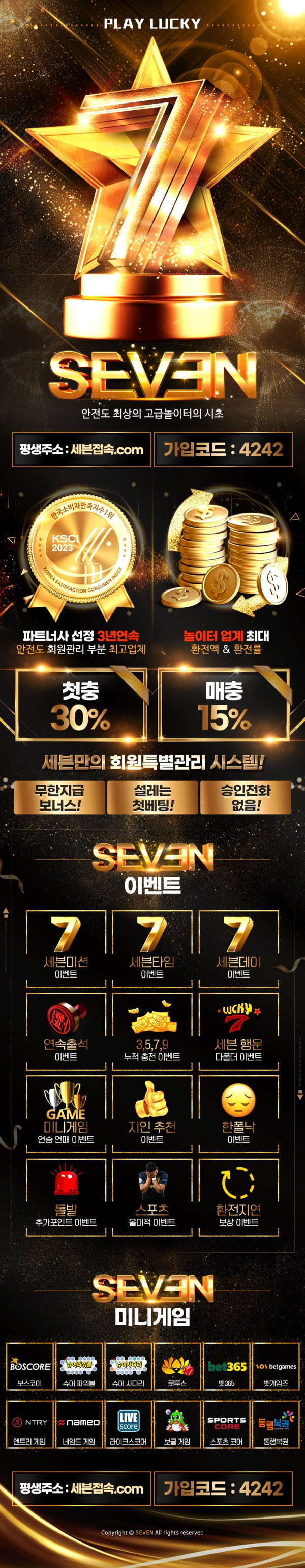 #세븐# 신규30% 무한15% 돌발20% #우연이 아닌 행운을 부르는 운명적 놀이터