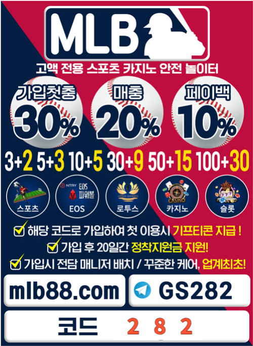 [MLB] MLB사이트 | 첫환전까지 무제한 20% | 가입첫충30% 혹은 3+2/5+3/10+5 | 페이백 10% | 토큰게…