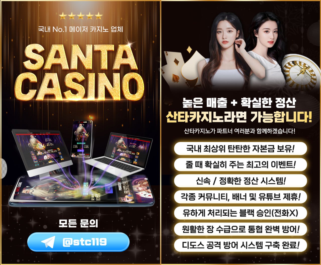 안녕하세요 [산타 카지노] 본사 영업팀장입니다.