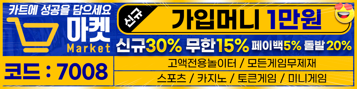 $$ 마켓 $$ 매일 첫충 15%, 지인 추천 300만 지급. 탄탄한 자본력과 오랜 운영 노하우!