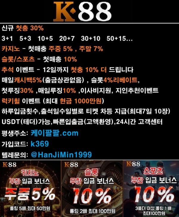 ▶️▶️▶️k88◀️◀️◀️우리계열●신규첫충30%●무한첫,매충10%●추석이벤+10%더●럭키휠 혜택도 받아보세요~