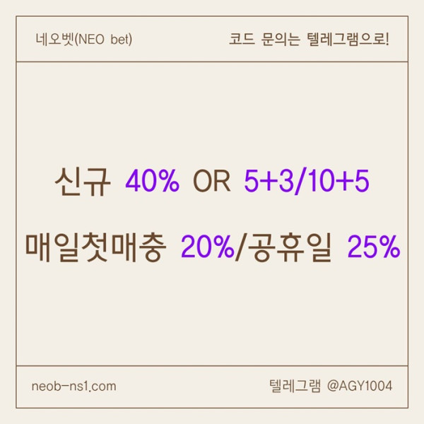 ((네오벳)) 신규가상OK! / 신규첫충40% 혹은 5+3/10+5/20+8