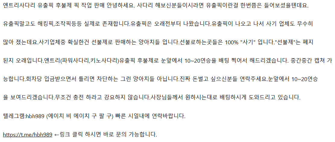 엔트리사다리 유출픽 후불제 픽 작업 판매 안녕하세요. 사다리 해보신분들이시라면 유출픽이란걸 한번쯤은 들어보셨을텐데요.