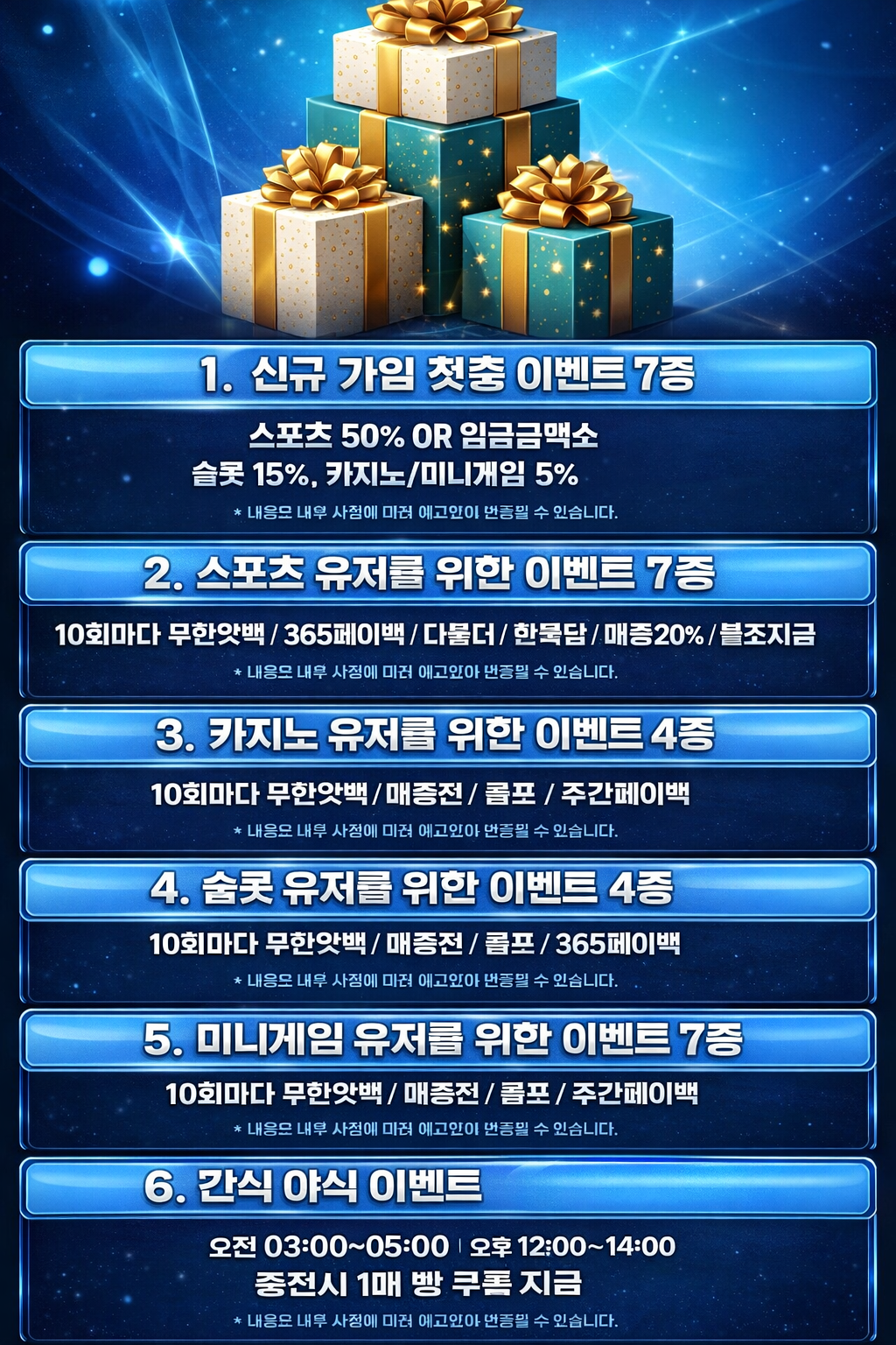 카지노 유저를 위한 첫충 5%, 매충 3% 보너스가 매일 제공됩니다. 실시간으로 쌓이는 콤프 시스템과 함께 최상의 플레이를 경험하세요.